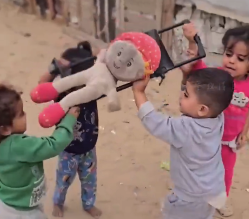 近日,一则加沙儿童玩游戏的视频在互联网上引发热议,视频中几位加沙儿童模仿抢救伤员,将洋娃娃放在小小的担架上抬走。